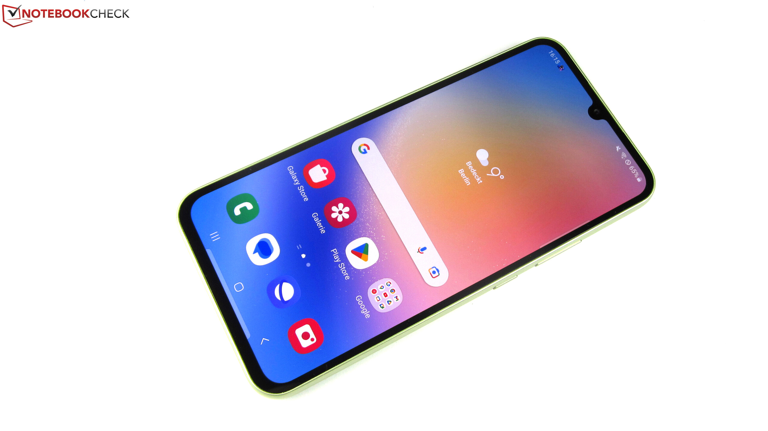 Das Gehäuse des Galaxy A34 5G besteht schon wie beim Galaxy A33 5G aus Kunststoff und ist nach IP67 gegen das Eindringen von Staub und Wasser geschützt. Käufer bekommen weiterhin ein sehr gut verarbeitetes und stabiles Kunststoff-Chassis, dessen Vorderseite von Gorilla Glass 5 geschützt wird. Die Selfiekamera sitzt wie beim Galaxy A33 5G in einer tropfenförmigen Aussparung.