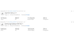Die Navigations-Künste des Galaxy A34 5G reichen auch in der Praxis aus, um sich präzise zum Ziel lotsen zu lassen. Auf der rund 10 Kilometer langen Strecke verortet uns das Smartphone fast immer genauso exakt wie der Fitness-Tracker Garmin Venu2, weicht bei dichterer Bebauung aber öfters mal von der Ideallinie ab. Warum es uns auf freier Strecke plötzlich schnurstracks in den See fährt, bleibt sein Geheimnis. Wir werten das als kleinen Ausrutscher, der am guten Gesamtergebnis nichts ändert.
