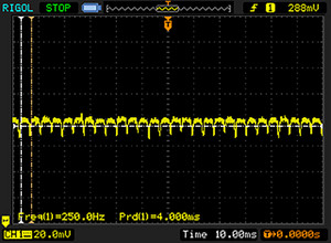 Das Display flackert mit 250 Hz (im schlimmsten Fall, eventuell durch Pulsweitenmodulation PWM) . Die Frequenz von 250 Hz ist relativ gering und daher sollte es bei sensiblen Personen zu Problemen wie Flackern oder Augenbeschwerden führen. Im Vergleich: 53 % aller getesteten Geräte nutzten kein PWM um die Helligkeit zu reduzieren. Wenn PWM eingesetzt wurde, dann bei einer Frequenz von durchschnittlich 8098 (Minimum 5, Maximum 343500) Hz. | |||