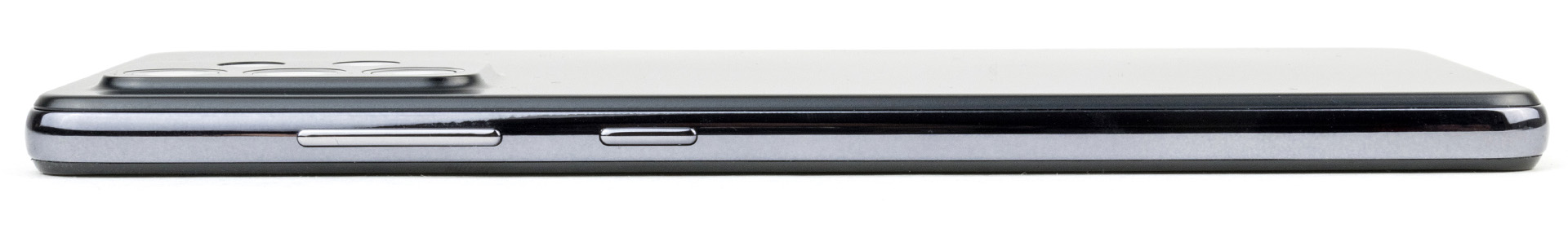 Auf der rechten Längsseite sind die Lautstärkewippe und die Funktionstaste untergebracht, welche sich gut ertasten lassen, fest im Rahmen sitzen und einen knackigen Druckpunkt vorweisen können.