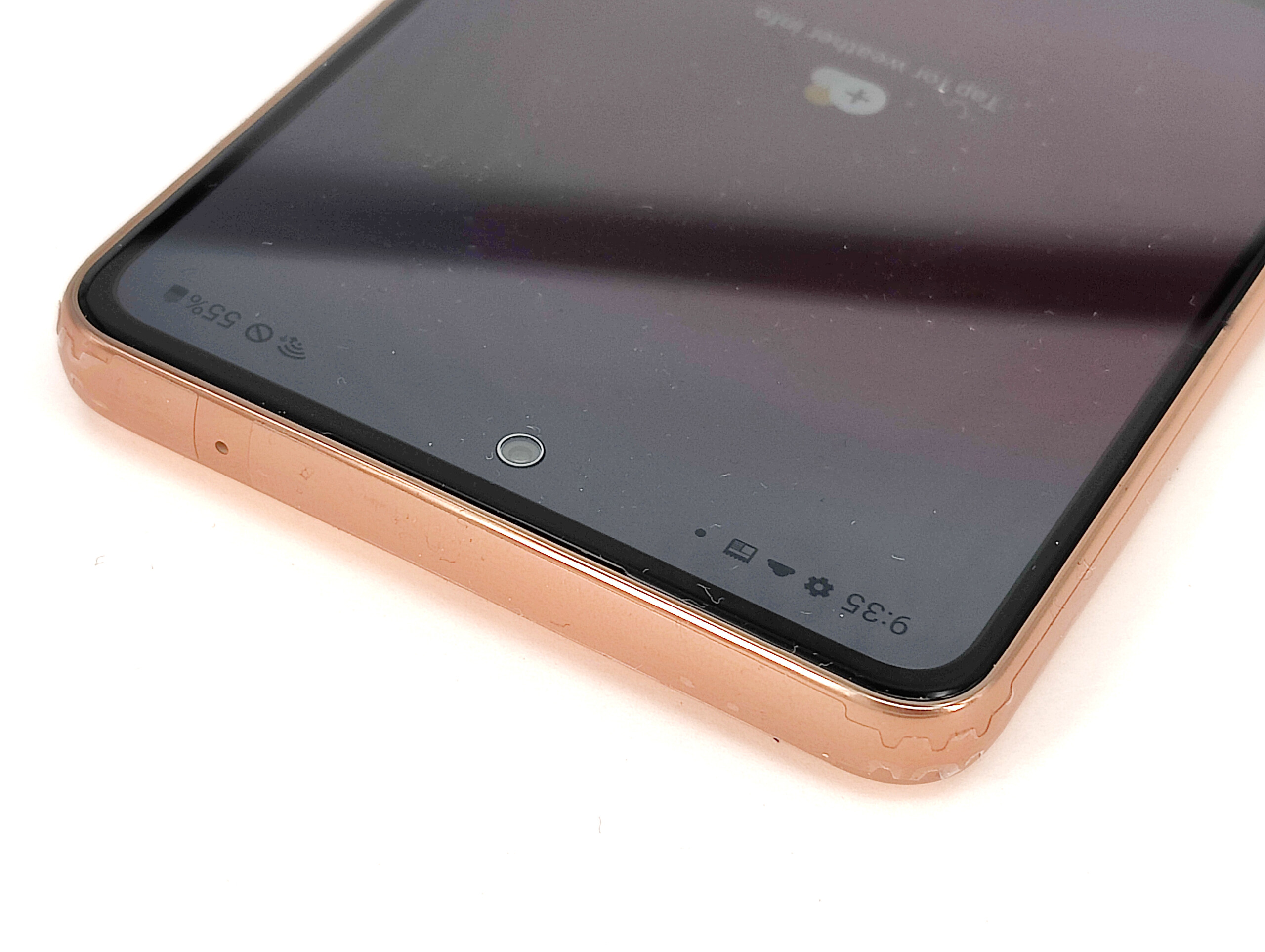 Der Bildschirm kann bei voll beleuchtetem Helligkeitssensor mit bis zu 761 cd/m² recht hell werden, die durchschnittliche Helligkeit ist dennoch leicht geringer als beim Display des Vorgängers Samsung Galaxy A52s. Der Screen kann einzelne Pixel komplett deaktivieren und damit theoretisch völliges Schwarz erzeugen, was zu leuchtenden Farben und sattem Schwarz führt.
