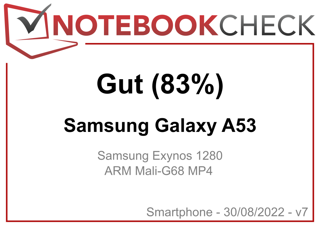 | 83.4 % v7 (old) | 06 / 2022 | Samsung Galaxy A53 Exynos 1280, Mali-G68 MP4 | 189 g | 128 GB UFS 2.1 Flash | 6.50" | 2400x1080 | |