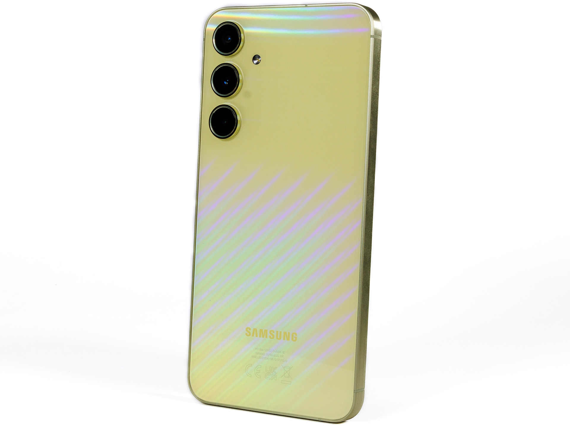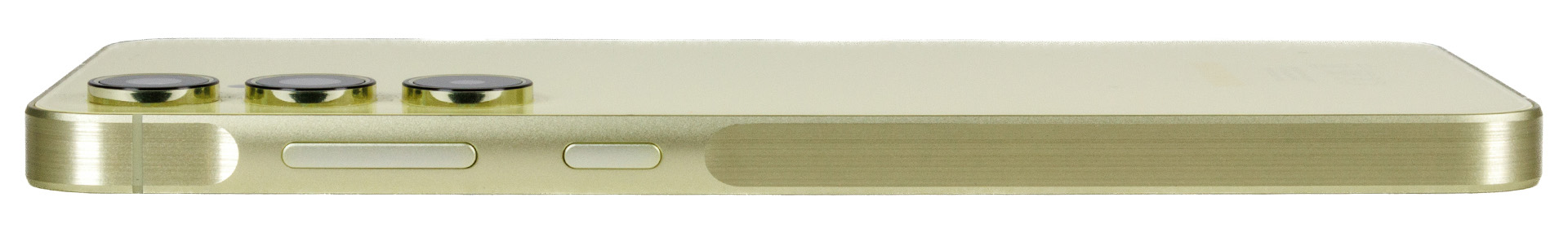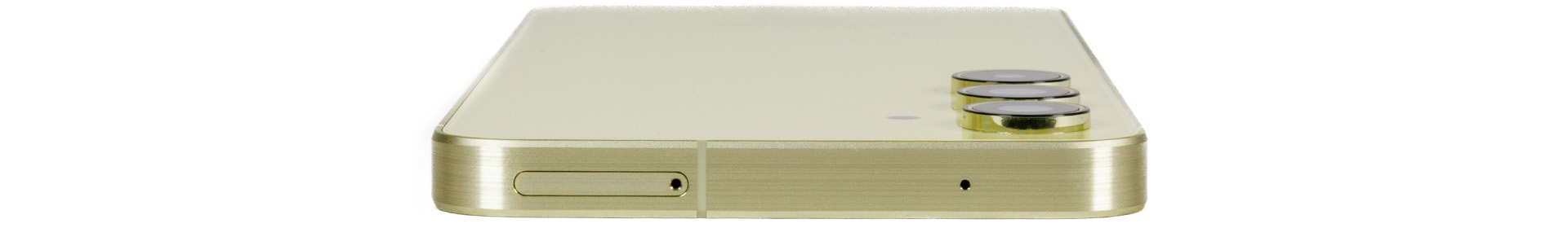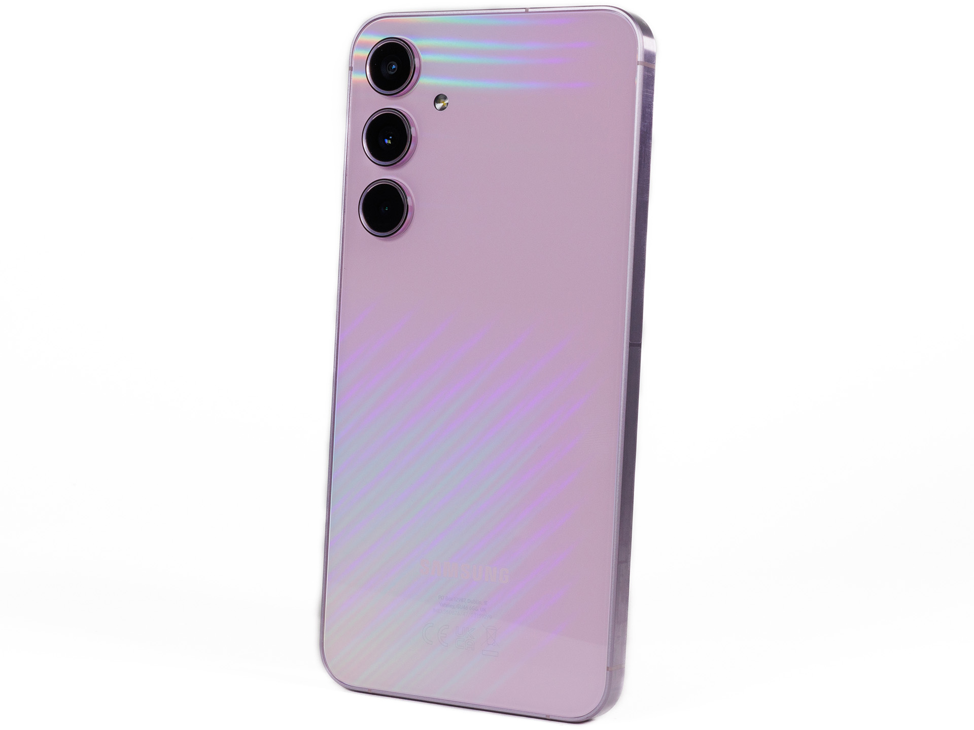 Das Samsung-Handy ist sauber verarbeitet. Die Spaltmaße sind sowohl gleichmäßig als auch enganliegend und Verwindungsversuche lässt es, ohne einen Laut von sich zu geben, über sich ergehen. Das Display-Oberflächen-Verhältnis (86 %; A54: 83 %) ist zwar wieder besser geworden, doch im Vergleich zu S-Serie doch eher altbacken. Der Rahmen des A55 besteht nun vollständig aus gebürstetem Aluminium und sieht richtig schick aus, außerdem kommt nun auf Vorder- und Rückseite Corning Gorilla Glas Victus+ zum Einsatz.
