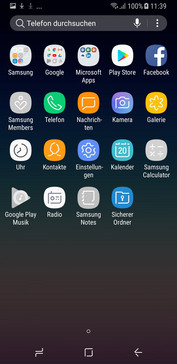 Auf dem Galaxy A8 (2018) läuft Android 7.1.1, dem Samsung seine hauseigene Benutzeroberfläche Samsung UI (hier in der Version 8.5) spendiert hat. Sie kommt auch in anderen aktuellen Samsung-Smartphones wie dem Galaxy Note 8 oder dem Galaxy S8 zum Einsatz. Neben einer kleinen Auswahl an eigenen Apps umfasst das OS-Paket Apps von Google, Facebook sowie Microsoft. Sie lassen sich nicht deinstallieren, sondern nur deaktivieren.
