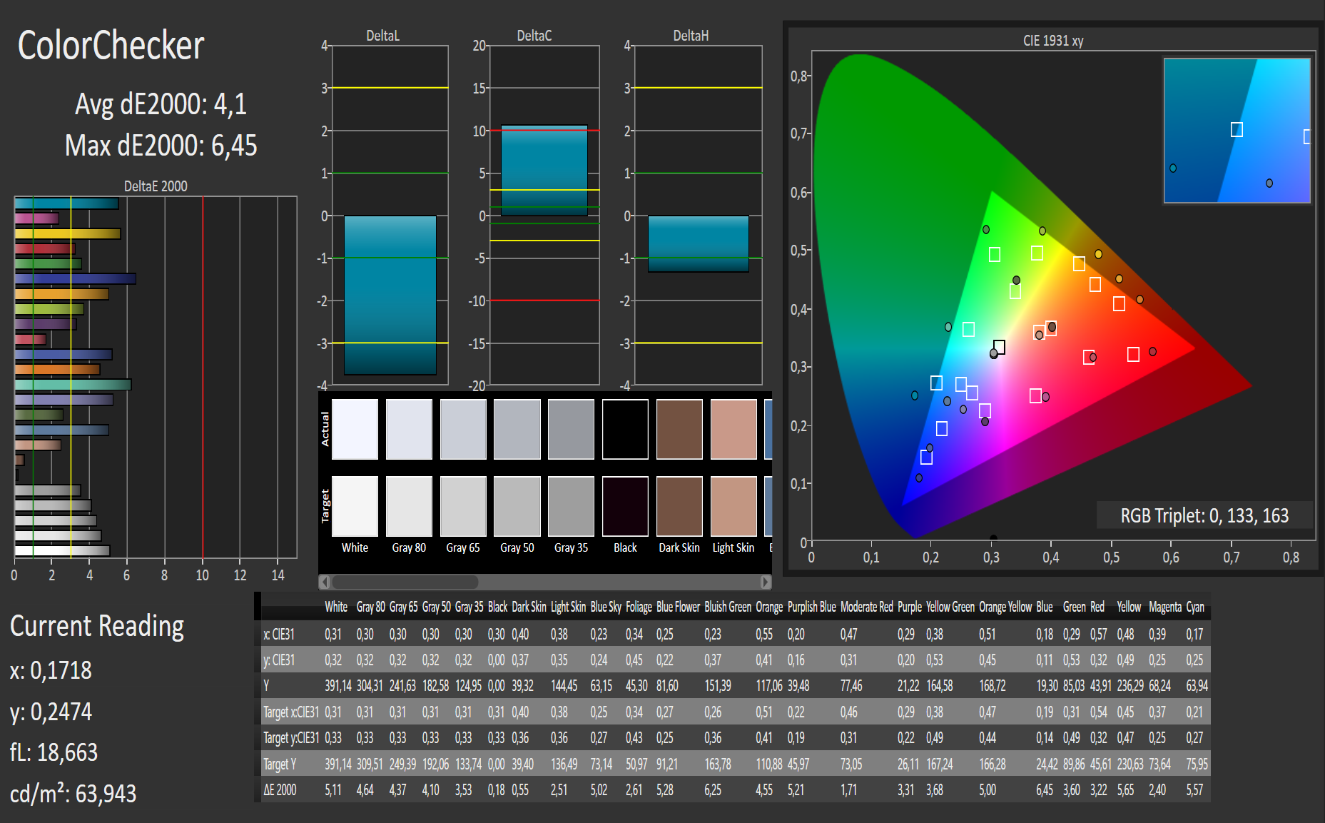 ΔE ColorChecker Calman: 4.1 | ∀{0.5-29.43 Ø4.78}
