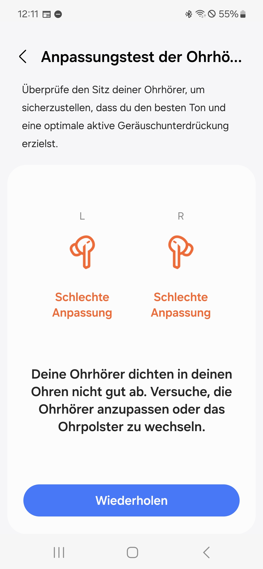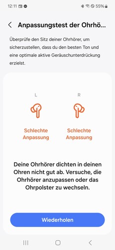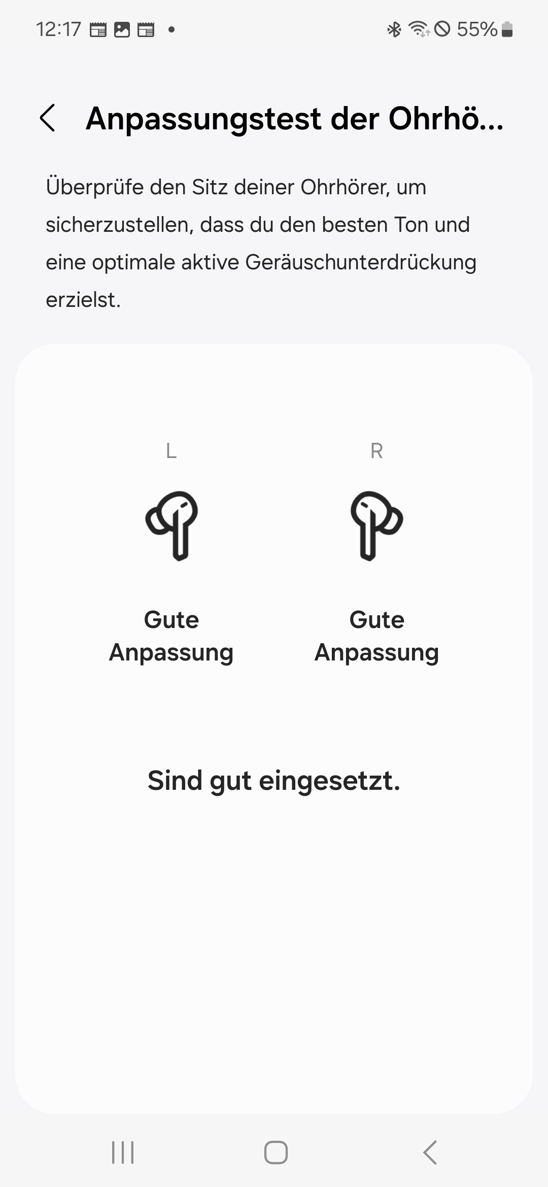 Durch die drei verschiedenen Größen für In-Ear-Aufsätze kann der Sitz der Galaxy Buds3 Pro optimiert werden. Die Ohrposter lassen sich vom Nutzer wechseln, haben mittlerweile jedoch einen verstärkten Kunststoffring im Inneren, der an den Ohrhörern arretiert. Dadurch sitzen sie mitunter sehr fest und wer nicht aufpasst, kann sie beim Wechselversuch schnell beschädigen. Samsung stellt eine Anleitung dafür bereit, jedoch zum Zeitpunkt des Tests keinen optionalen Ersatz.