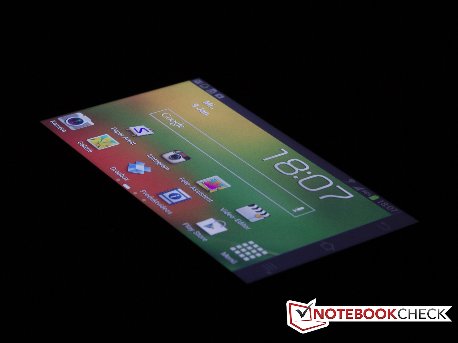 Die Eingabe über den Touchscreen klappt sowohl im Tablet-Betrieb als auch beim Fotografieren sehr gut und glänzte durch gutes Ansprechverhalten und hohe Genauigkeit. Die Werte des Touchscreens an sich konnten ebenfalls überzeugen, auch wenn dieser bei bestimmten Blickwinkeln die Farben minimal verfälscht.