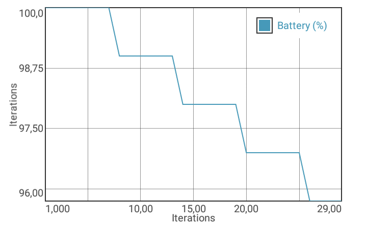 Throttling ist, wie erwartet, kein Thema für das Galaxy J5. Der GFXBench Akku-Test wiederholt den T-Rex-Test dreißigmal und zeichnet dabei die Temperaturen und auch die Leistung auf. Die Schwankung der FPS-Zahl ist dabei sehr gering und auch am Ende des Tests können wir keinen Einbruch feststellen.