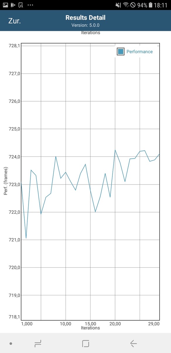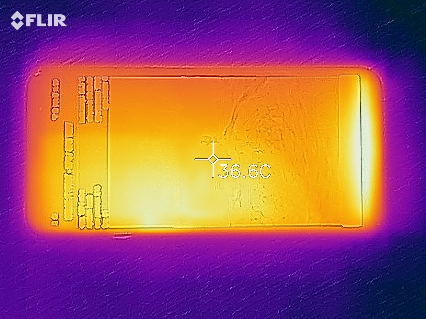 In unserem Test messen wir am Samsung J6+ Oberflächentemperaturen von maximal 31 °C im Leerlauf und etwas mehr als 33 °C unter Last. Damit bleibt das Android-Smartphone stets in einem gemäßigten Temperaturbereich und wird nie zu warm, um es in der Hand halten zu können. Im Dauerlasttest des GFXBench-ES-2.0-Benchmarks zeigt sich außerdem, dass die Leistung des Telefons auch über einen längeren Zeitraum ohne Performance-Einbrüche aufrechterhalten werden kann.