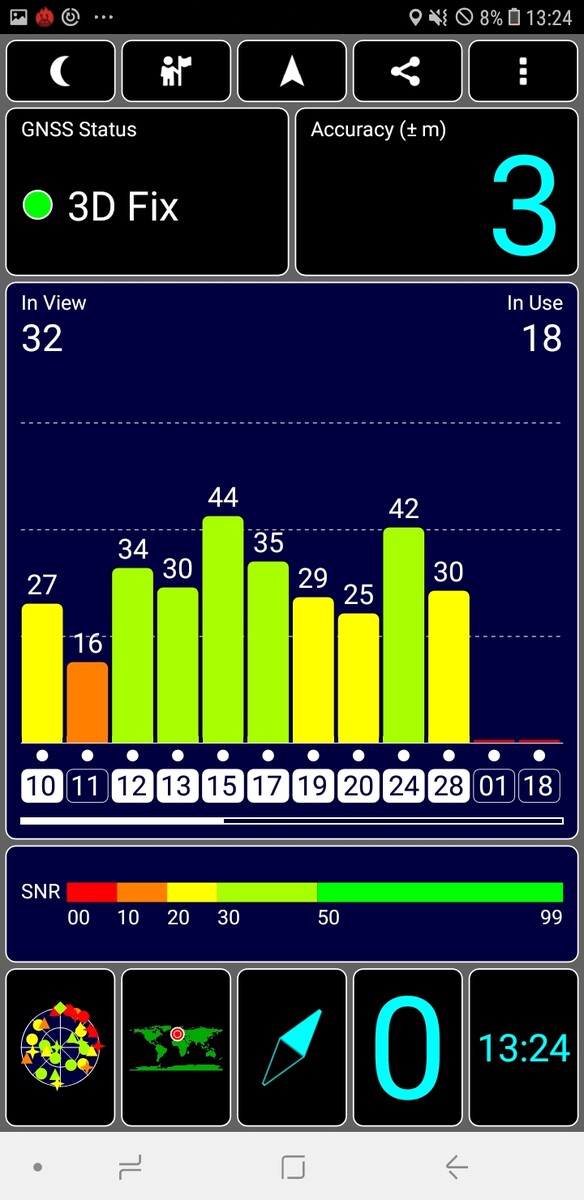 Mit der App GPS-Test überprüfen wir, wie gut das Samsung Galaxy J6 Plus seinen Standort bestimmen kann. Dabei stehen Nutzern GPS, GLONASS und Beidou zur Verfügung, mit deren Hilfe wir im Freien eine Genauigkeit von bis zu drei Metern erreichen. In geschlossenen Räumen ist ein Wert von fünf Metern möglich.