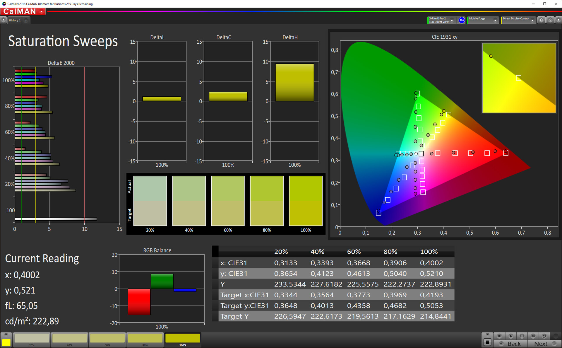 | Delta E Graustufen * | 8 | 1.2 85% | 1.7 79% | 5.8 27% | 5 37% | 3.4 57% |