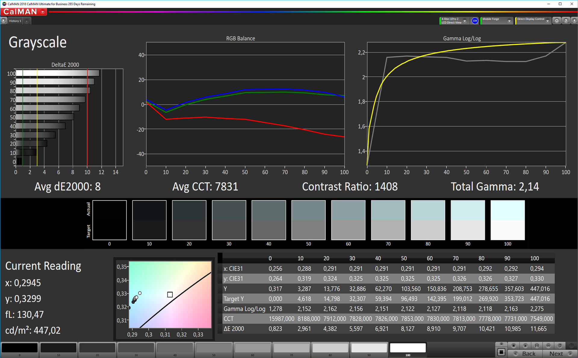 ΔE Greyscale Calman: 8 | ∀{0.09-98 Ø5}