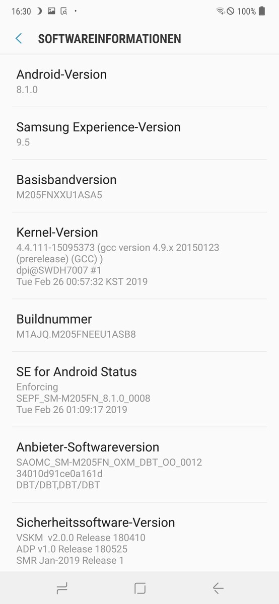 Bei der Software muss sich Samsung vorwerfen lassen, dass statt aktuellem Android 9 Pie nur Version 8.1 Oreo installiert ist. Darüber liegt die Herstellernutzeroberfläche Experience UX in Version 8.5, die nicht nur die Optik, sondern auch den Funktionsumfang von Android erweitert. Immerhin: Zwar war Samsung in der Vergangenheit gerade bei günstigen Modellen nicht immer für eine vorbildliche Update-Politik bekannt, für das M20 hat der Hersteller aber schon ein Update auf Android 9 versprochen. Es ist derzeit für August 2019 geplant.