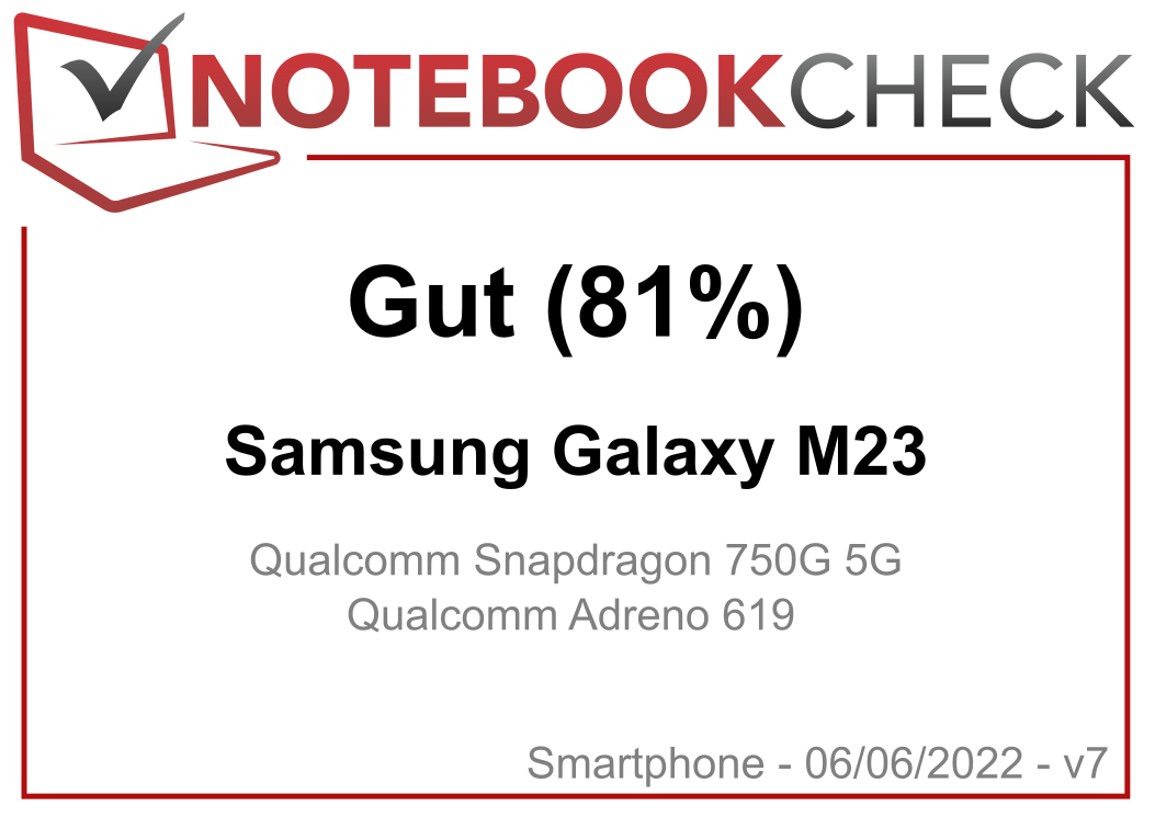 | 81.1 % v7 (old) | 06 / 2022 | Samsung Galaxy M23 SD 750G 5G, Adreno 619 | 198 g | 128 GB UFS 2.1 Flash | 6.60" | 2408x1080 | |