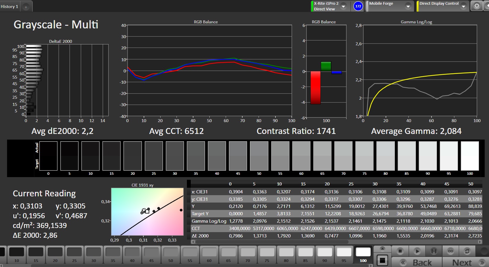 ΔE Greyscale Calman: 2.2 | ∀{0.09-98 Ø5}