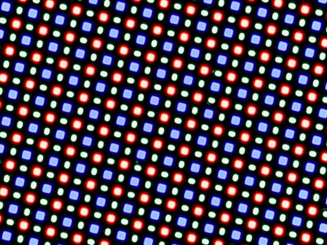 Die AMOLED-Technologie bietet große Vorteile im Bereich des Kontrastraumes, da die Pixel völlig ausgeschaltet werden können und so zumindest theoretisch ein absolutes Schwarz möglich ist. Dadurch strahlen auch Farben intensiver. In der Voreinstellung "natürlich" werden Farben und Graustufen relativ exakt dargestellt, nur bei Grüntönen stellen wir eine zu hohe Abweichung fest. Somit kann man sich bei der Bewertung von Druckfarben nicht ganz auf das Display verlassen.