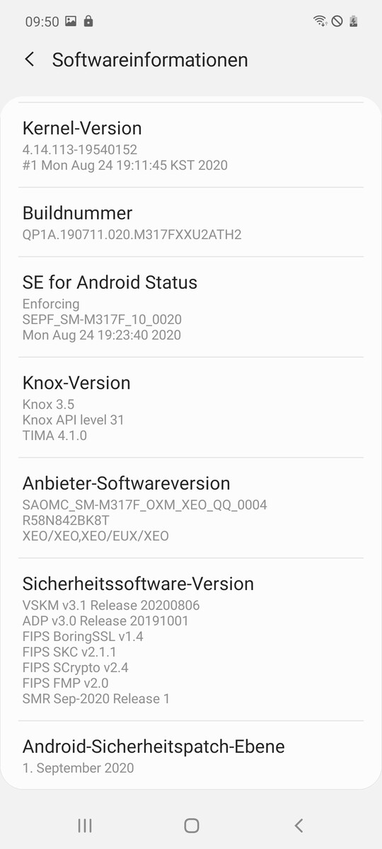 Android 10 bildet die Grundlage für Samsungs OneUI 2.1. Sie entfernt sich zumindest optisch teils recht deutlich vom Vanilla-Android, die Bedienung ist aber in vielen Bereichen so ähnlich, dass Umsteiger von anderen Marken sich schnell einfinden sollten. Unser Galaxy M31s verlässt sich zum Testzeitpunkt auf Sicherheitspatches aus dem September, hier muss also schnellstmöglich ein Update durch Samsung erfolgen.