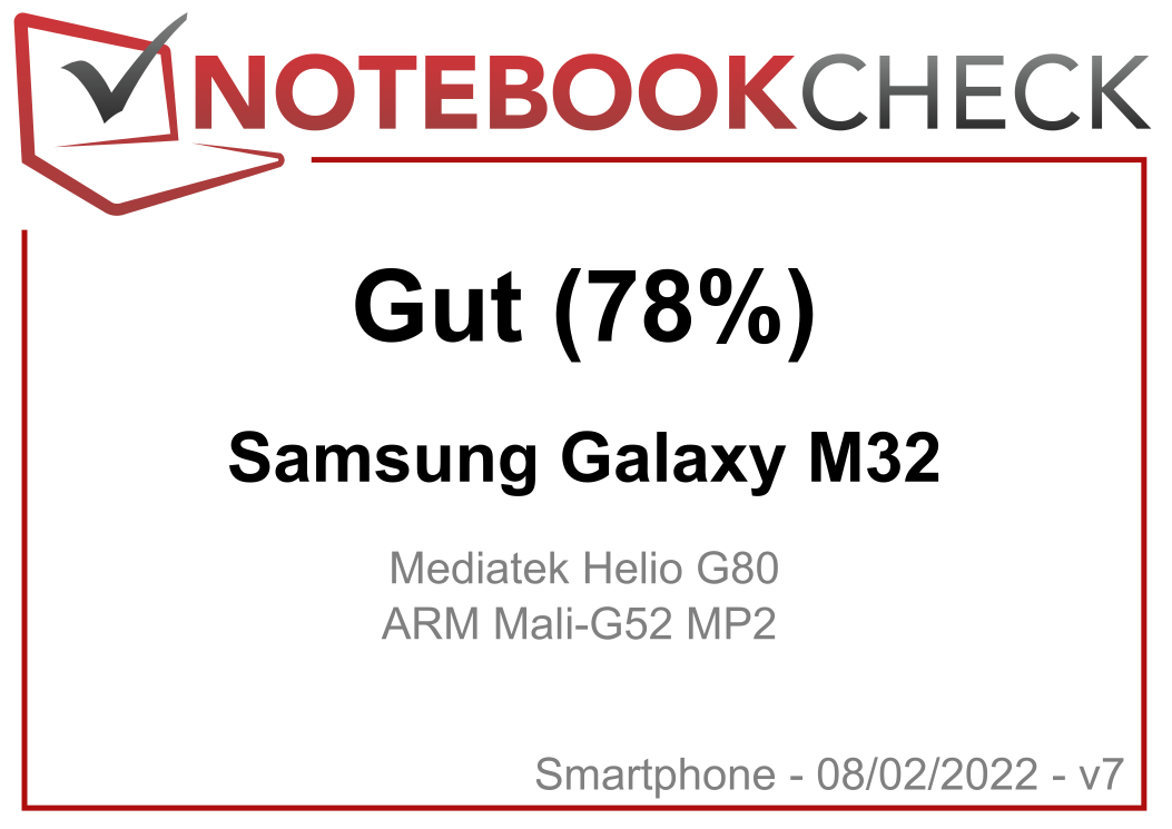 | 78.6 % v7 (old) | 02 / 2022 | Samsung Galaxy M32 Helio G80, Mali-G52 MP2 | 180 g | 128 GB eMMC Flash | 6.40" | 2400x1080 | |