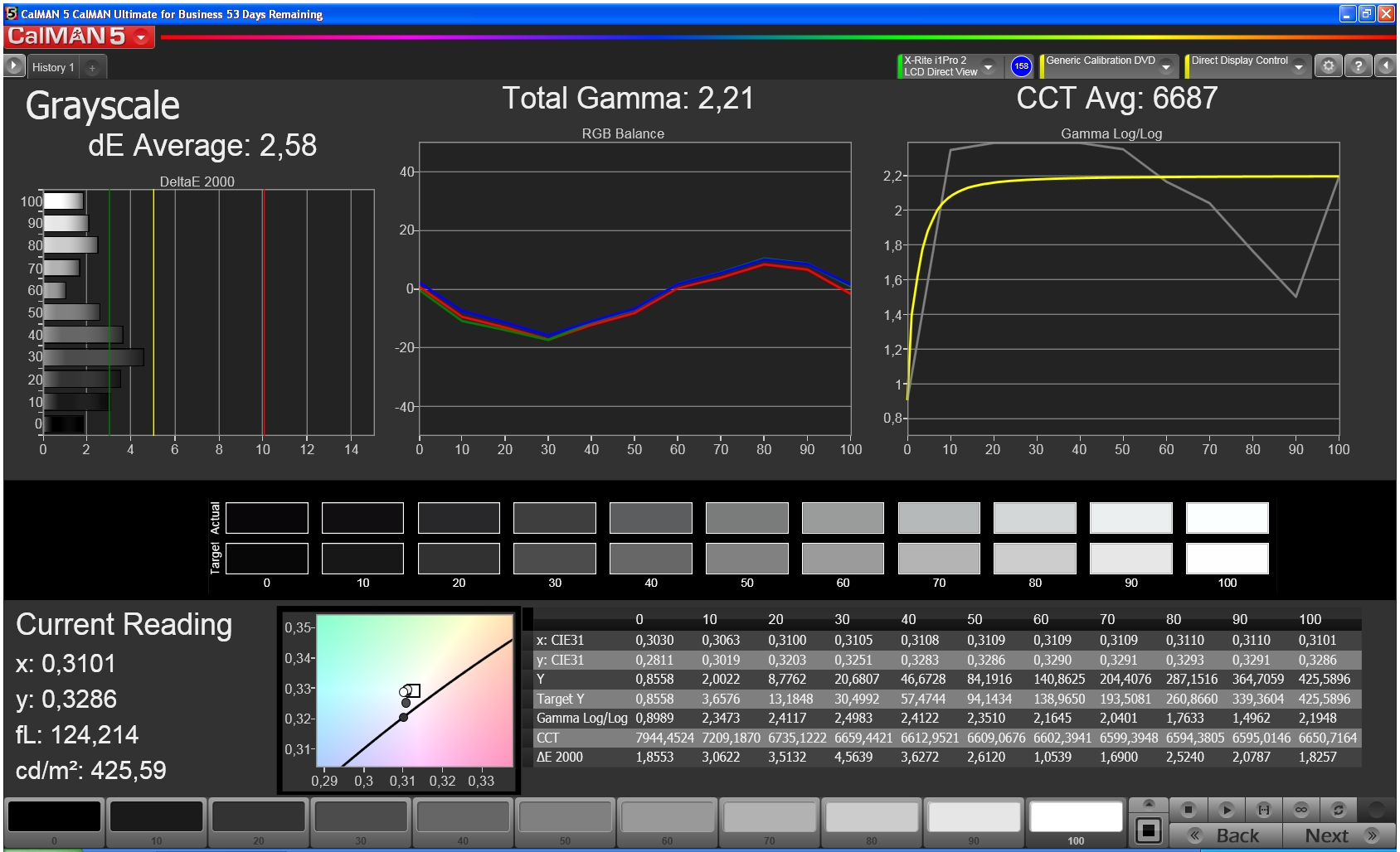 ΔE Greyscale Calman: 2.53 | ∀{0.09-98 Ø5}