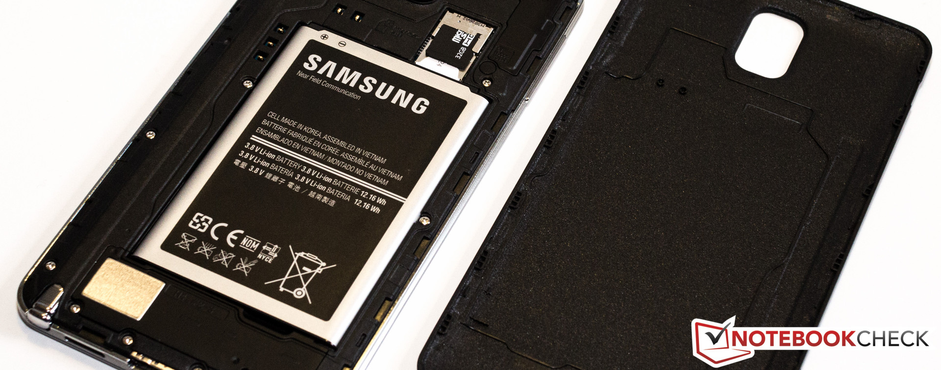 Der austauschbare Akku verfügt über eine Kapazität von 12,16 Wh (3.200 mAh) und ist somit geringfügig leistungsstärker als das Kraftwerk im LG G2. Hierbei handelt es sich um den gleichen Energiespeicher, der auch im Galaxy Mega 6.3 verwendet wird. Auch wenn es sich dabei um einen Akku mit gleicher Größe handelt, ist die Laufzeit in zwei von drei Szenarien absolut nicht vergleichbar. Liegt keine Last am SoC an und ist die Displayhelligkeit auf ein Minimum heruntergeregelt, kann das Note 3 eine Laufzeit von 36 Stunden und 36 Minuten abrufen – absolut rekordverdächtig. Ebenso ausdauernd ist das Smartphone in unserem WLAN-Test. Bei einer Displayhelligkeit von ca. 60 % (150 cd/m²) wird alle 30 Sekunden eine Internetseite aufgerufen. Erst nach knapp 18 Stunden ist eine erneute Ladung fällig. Sind alle vier Kerne der Recheneinheit komplett ausgelastet und zudem alle Funkmodule aktiviert, sinkt die Laufzeit stark. Hierbei kommt das Galaxy Note 3 immer noch auf 04:15 Stunden. Das LG G2 muss sich geschlagen geben. Ein vollständiger Ladevorgang ist bereits nach 02:20 Stunden abgeschlossen.
