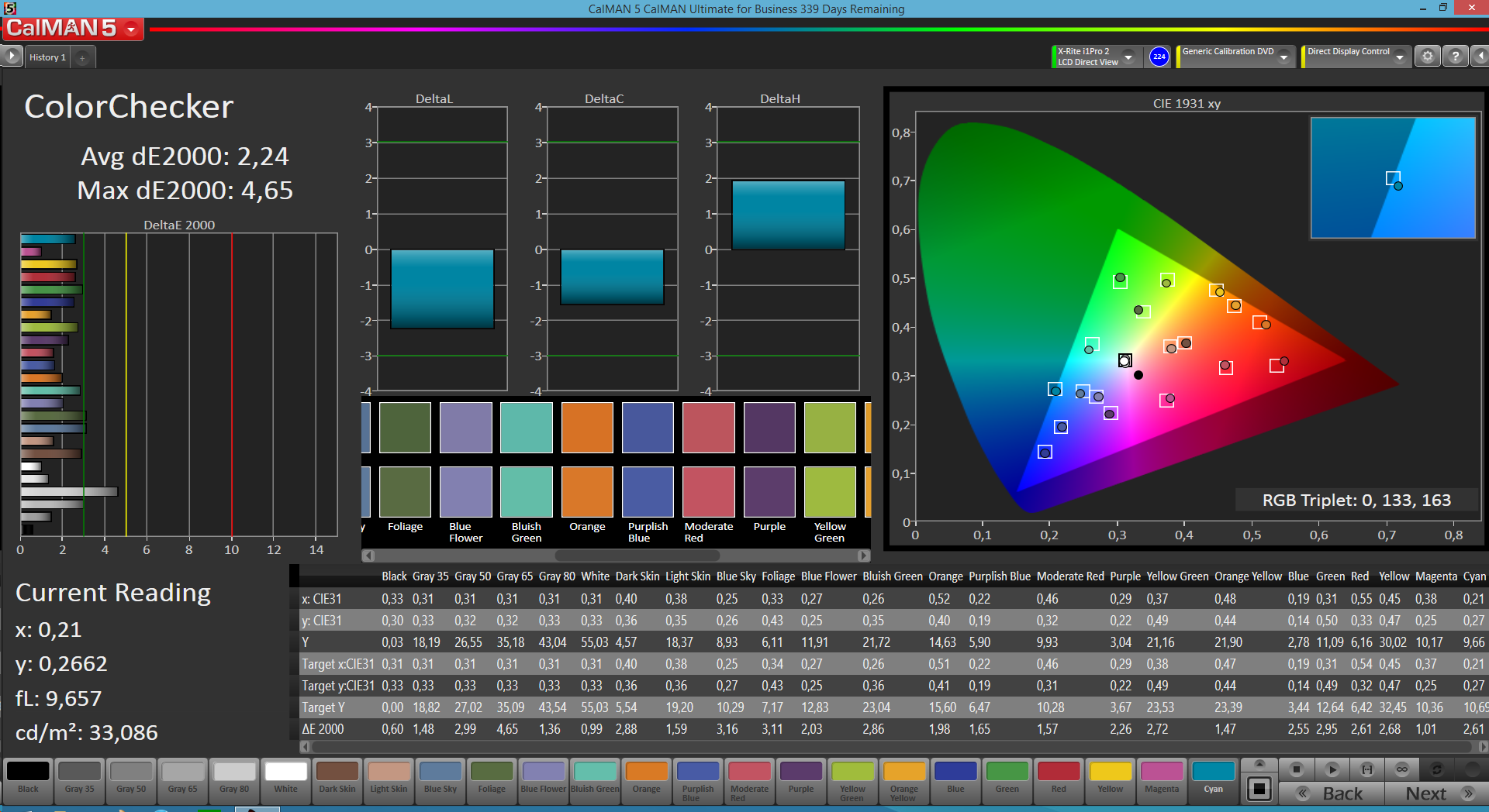 ΔE ColorChecker Calman: 2.24 | ∀{0.5-29.43 Ø4.78}