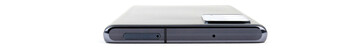 Das Galaxy Note20 ist gemäß IP68 gegen das Eindringen von Staub und Wasser geschützt. Der Kartenslot unterscheidet sich bei unserem grauen Modell optische etwas vom Metallrahmen und kann zwei Nano-SIM-Karten aufnehmen. Der S-Pen ist wieder in das Gehäuse integriert, befindet sich in diesem Jahr an der linken Ecke der Kinnseite und nicht mehr rechts.