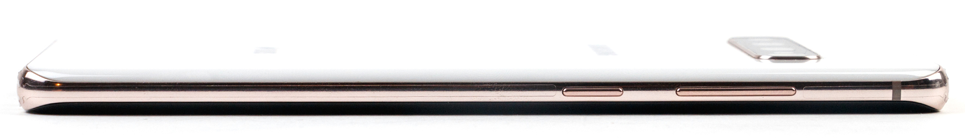 Durch die Einhandbedienung lässt sich das Samsung-Handy auch mit einer Hand recht gut bedienen, Inhalte und Eingabeflächen am oberen Darstellungsrand sind aber auch dann noch schwer zu erreichen. Der Powerbutton ist für unseren Geschmack zu weit oben platziert, da er mit dem Daumen der rechten Hand kaum zu erreichen ist, Linkshänder haben mit dem Zeigefinger selbst bei großen Händen keine Chance, ihn zu erreichen, ohne umgreifen zu müssen. Ähnliches gilt für die Lautstärkewippe, nur der Bixby-Button ist immer gut erreichbar. Die Verarbeitung und Einpassung der Buttons ist hervorragend. Der Druckpunkt ist präzise definiert und der Hub schraff sowie knackig kurz.