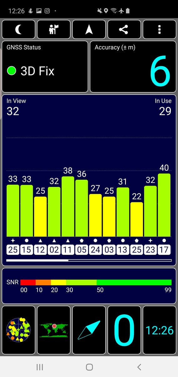 Zur Ortung nutzt das Samsung Galaxy S10+ die Satellitennavigationssysteme GPS, Glonass, BeiDou und Galileo. Das Unterstützungssystem SBAS steht nicht zur Verfügung, genauso wenig wie Dual-GPS, welches unter anderem im Mate 20 Pro zum Einsatz kommt. Der Satfix gelingt sowohl im Freien als auch in Gebäuden sehr schnell und exakt. Während die Genauigkeit im Freien zwischen vier und sechs Metern schwankt, sind es in Häusern eher die sechs Meter, was aber immer noch ein sehr guter Wert ist.