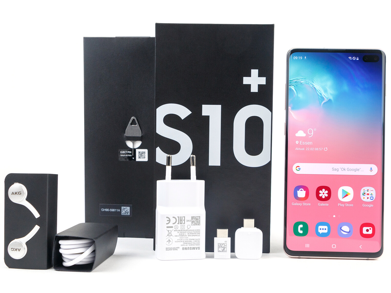 Zum Start der neuen Galaxy-S-Reihe stellt das Galaxy S10 Plus das Spitzenmodell der neuen Serie dar. Mit einem 6,4 Zoll messenden Curved-Dynamic-AMOLED-Display, bis zu 12 GB Arbeits- und einem Terabyte internen Speicher heißt die Devise zum zehnjährigen Jubiläum ganz deutlich: "Klotzen, nicht kleckern." Dazu gibt es drei Kameras auf der Rückseite und zwei an der Front, welche direkt ins Panel eingelassen sind. Außerdem findet sich erstmals in einem Samsung-Handy ein Fingerabdruckscanner unter dem Glas wieder, sowie Wireless PowerShare, um andere Geräte drahtlos laden zu können. Darüber hinaus ist das Galaxy S10+ das erste Smartphone mit Wifi 6 (ax-Standard) und LTE Cat. 20, letzteres ermöglicht Downloadraten von bis zu 2 GBit/s und das noch mit LTE. Im 2. Quartal soll noch das 5G-Modell der S10-Reihe folgen, welches ein noch größeres Display und entsprechend mehr Akkupower besitzt.