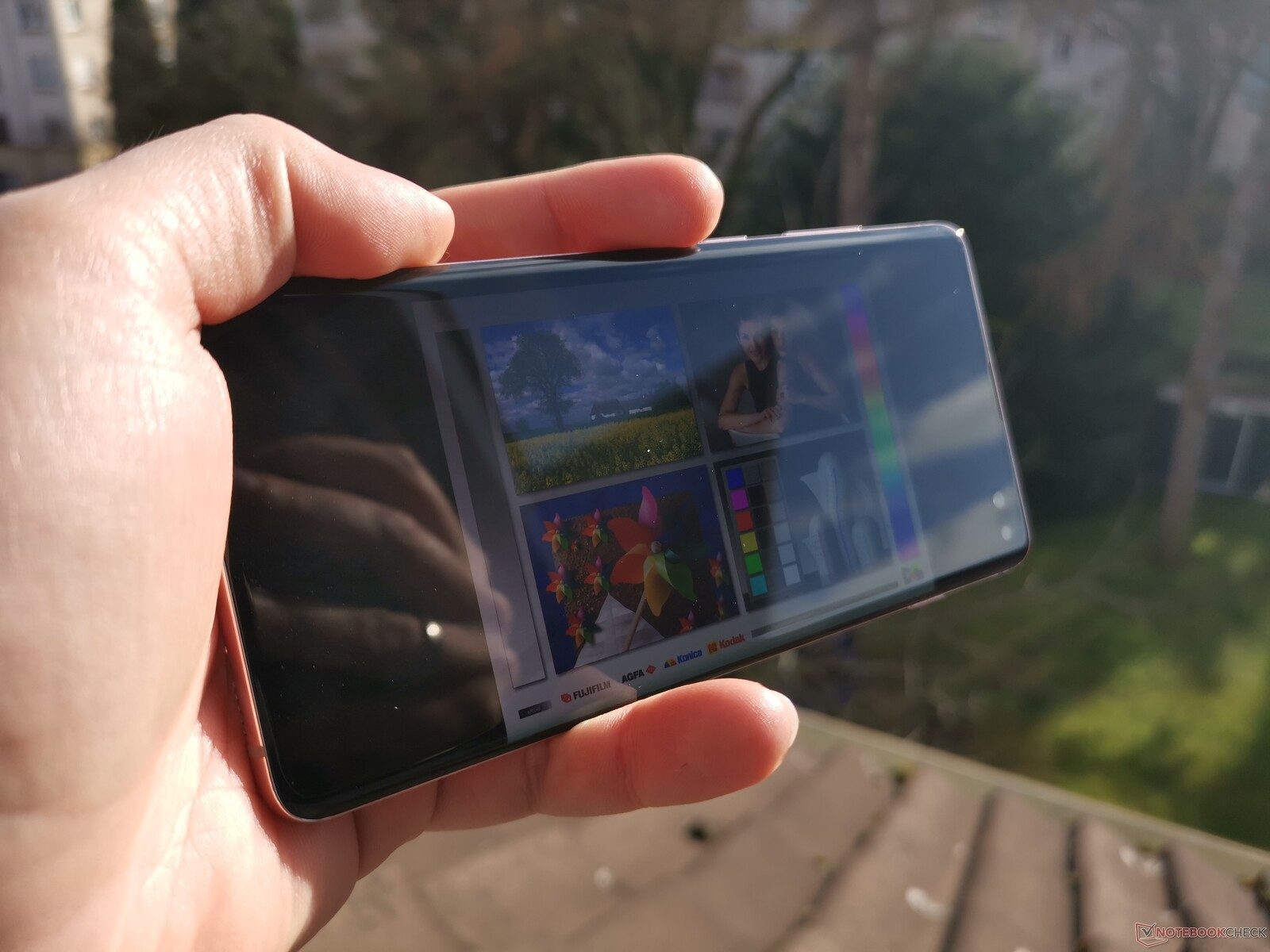 An den Seitenkanten ist das OLED-Display wieder leicht abgerundet. Die damit einhergehenden Features wie die Seitenlichtbenachrichtigungen und zusätzliche Bedienelemente sind ebenfalls wieder an Board. Auch die Always-On-Display-Funktion und der Nachtmodus stehen wie gewohnt zur Verfügung. Letzterer macht in Verbindung mit der sehr geringen Minimalleuchtkraft (1,58 cd/m²) vor allem Leseratten Freude, da das Panel im Dunkeln nicht blendet. Lediglich der Einsatz von Pulsweitenmodulation zur Helligkeitssteuerung dürfte hier für empfindliche Personen ein Störfaktor sein. Das Flackern bewegt sich mit 236 Hz auf einem typischen Niveau für OLEDs. Aufgrund des flachen Amplitudenverlaufs dürften aber nur die wenigsten Nutzer überhaupt Beschwerden deswegen zeigen.