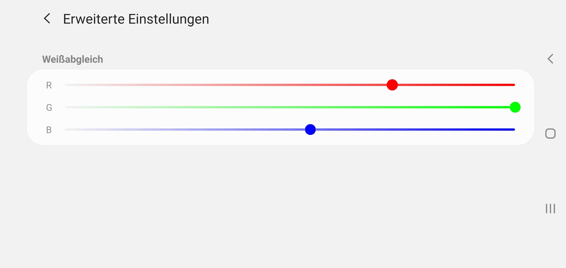 Wer eine noch genauere Darstellung des Displays wünscht, kann es von Hand kalibrieren, diese Möglichkeit besteht jedoch nur im Lebendig-Modus, mit welchem wir dann tatsächlich noch bessere Ergebnisse erzielen konnten. Die dazugehörigen Einstellungen können Sie dem Screenshot entnehmen.