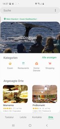 Die Telefonie-App des Samsung Galaxy S10+ hat durch die neue One UI wieder ein kleines Update erhalten und fügt den zuletzt gestrichenen Reiter für Orte wieder hinzu. Dort werden gut bewertete Restaurants und Geschäfte übersichtlich aufgelistet und auch passende Coupons lassen sich einfach finden. Der übrige Teil der App ist einfach strukturiert und übersichtlich sortiert.