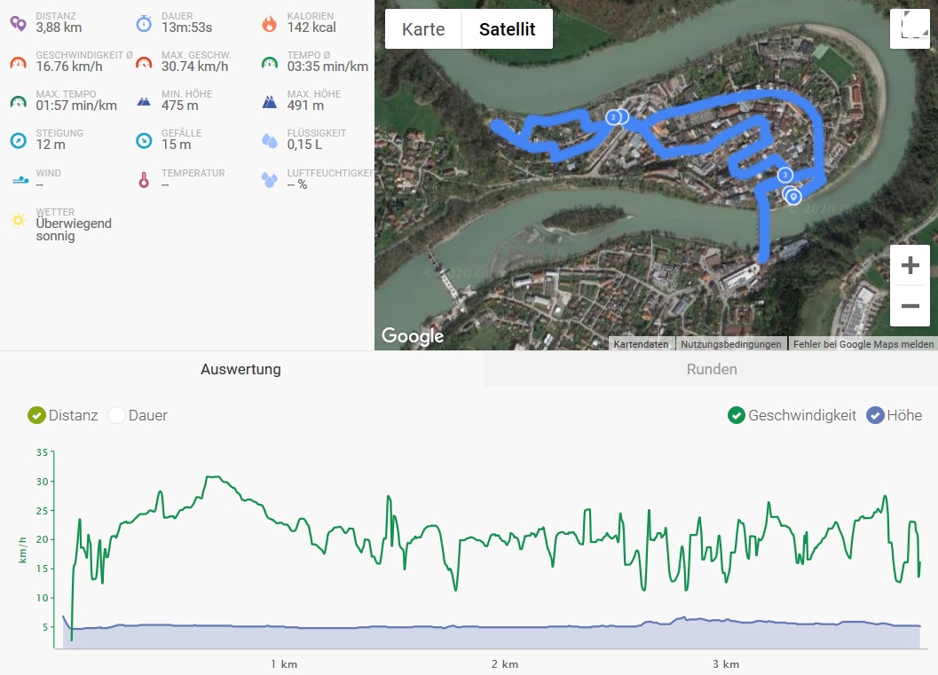Bei unserem Praxistest zur Ortung, einer Fahrradtour, zu der wir auch das Profi-Navi Garmin Edge 520 als Vergleichsgerät mitnehmen, schlägt sich das Galaxy S20+ gar nicht so schlecht. Absolute Genauigkeit können wir ihm nicht attestieren, aber auch das Garmin-Navi macht hin und wieder kleine Sprünge abseits des gefahrenen Weges. Wer also ein Smartphone sucht, das insgesamt recht genau navigieren kann, der kann das Samsung Galaxy S20+ nach unseren Tests getrost in Betracht ziehen.