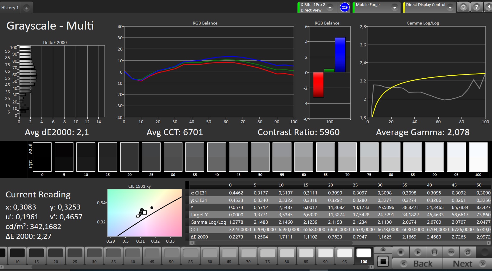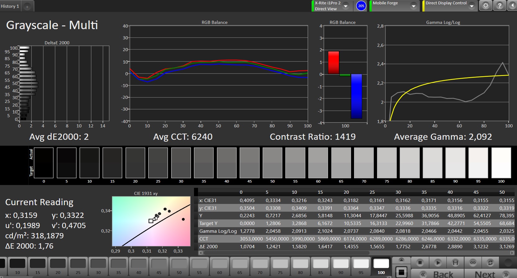 ΔE Greyscale Calman: 2 | ∀{0.09-98 Ø5}