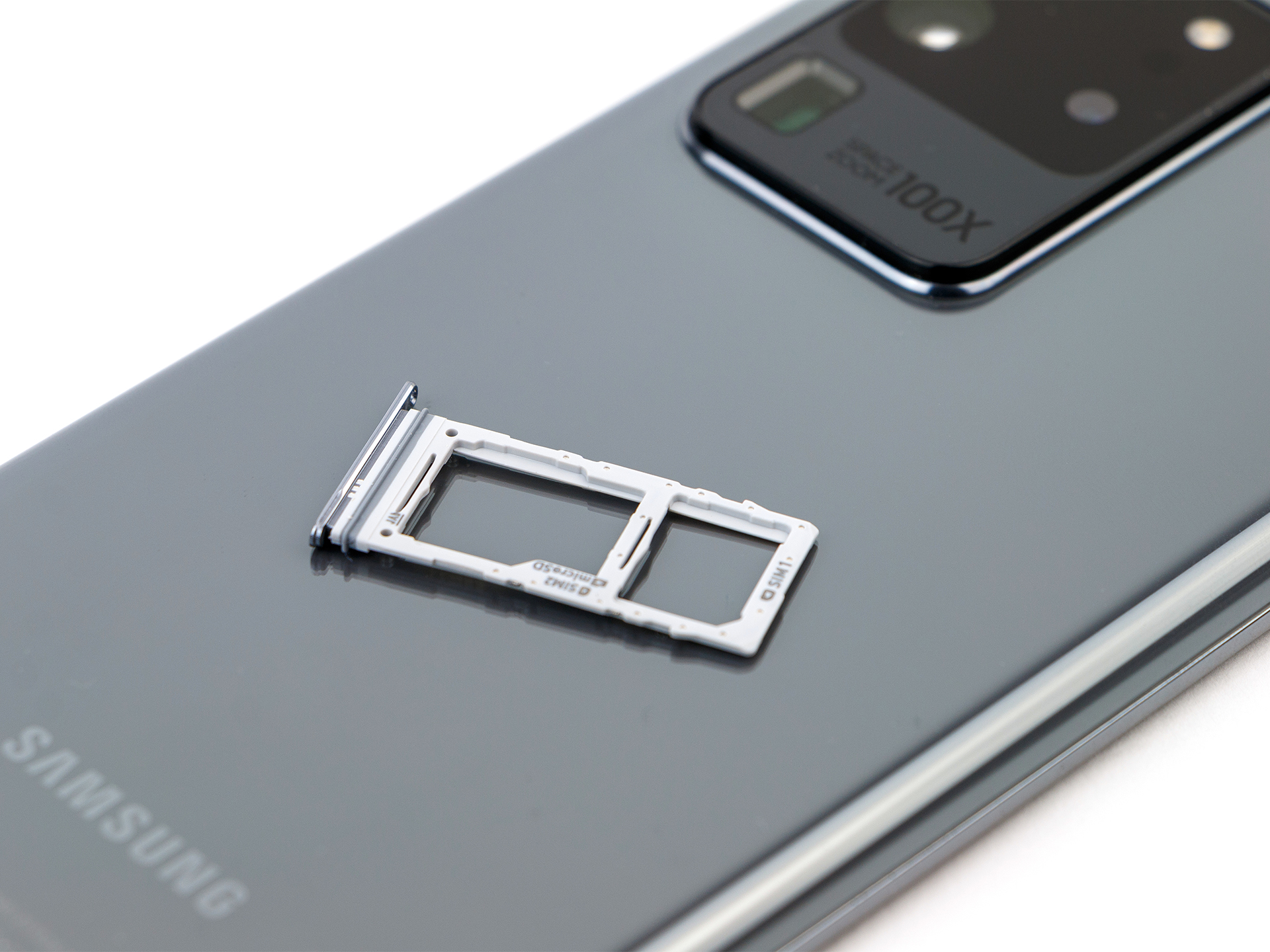 Das Samsung Galaxy S20 Ultra besitzt einen microSD-Kartenslot, welcher optionale Speichermedien bis zu einer Größe von 1 TB unterstützt. Eine Formatierung als interner Speicher ist nicht möglich und Apps können nicht direkt auf der microSD installiert, jedoch Teile davon dorthin ausgelagert werden.
