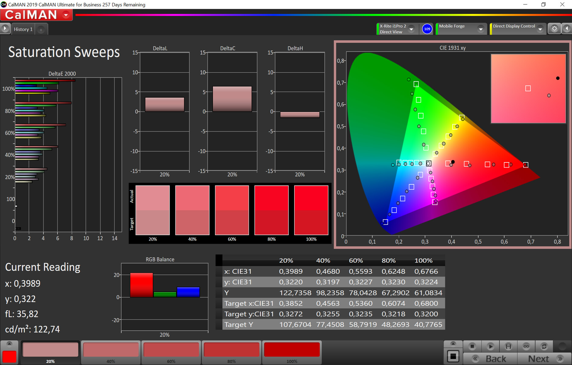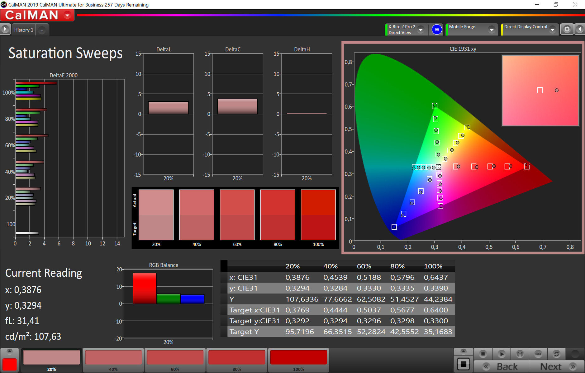 | Delta E Colorchecker * | 3.2 | 1.4 56% | 4.4 -38% | 2.5 22% | 3.46 -8% | 6.27 -96% |