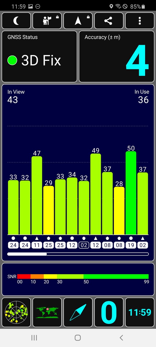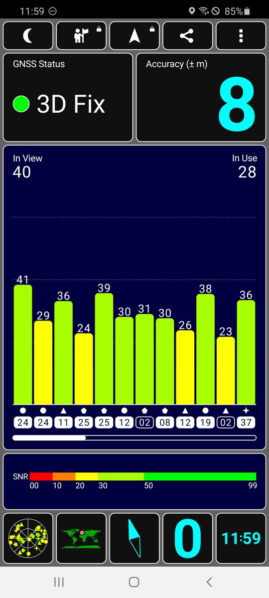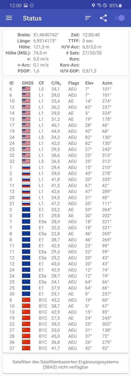 Das Samsung Galaxy S20 Ultra unterstützt die Satellitennetzwerke GPS, Glonass, BeiDou und Galileo, für GPS und Galileo steht sogar einer Dual-Band-Ortung nichts im Wege. Der Satfix erfolgt im Freien sehr schnell, in Gebäuden kann es mitunter ein wenig dauern bis die erste Ortung zustande kommt.