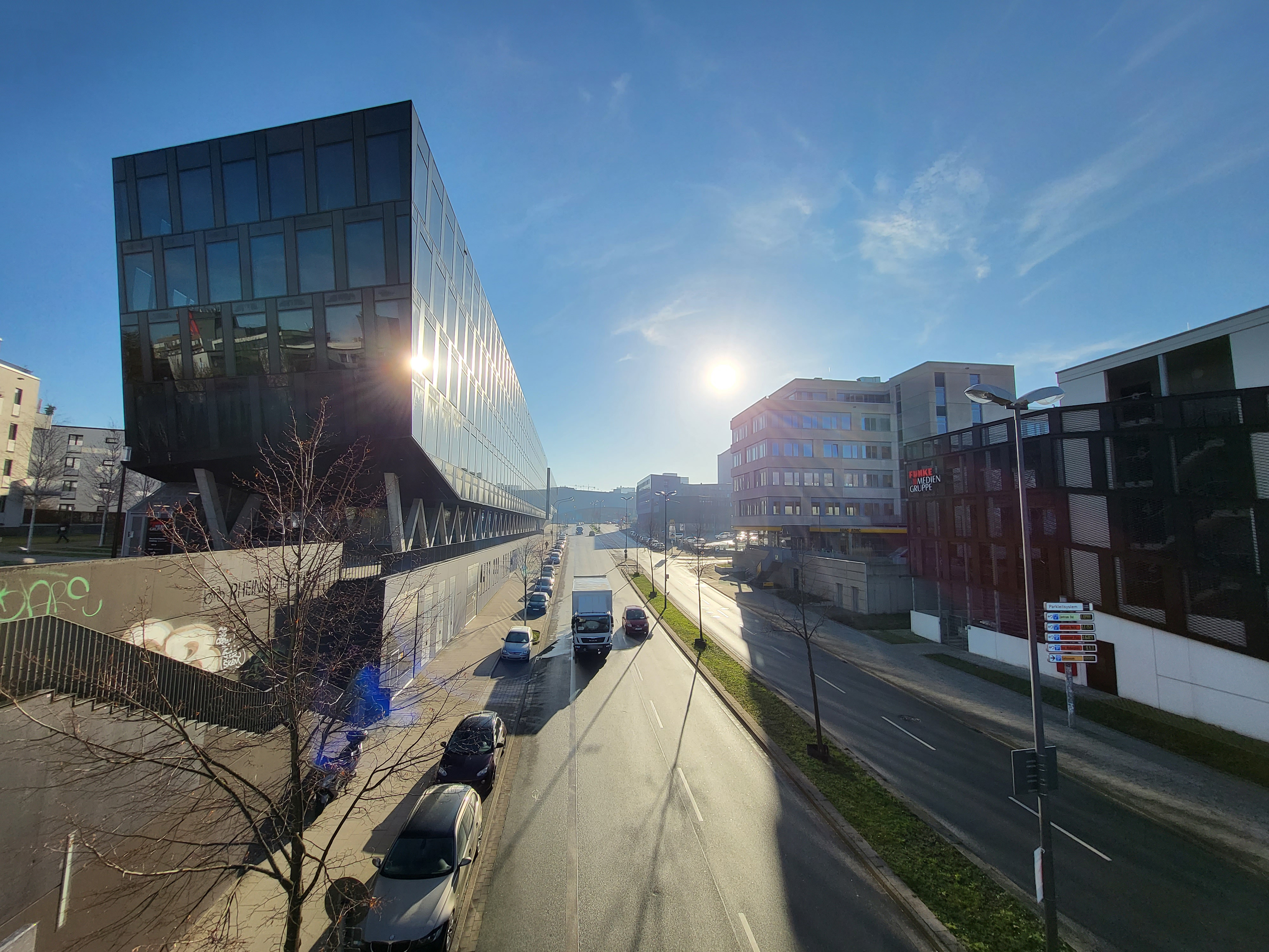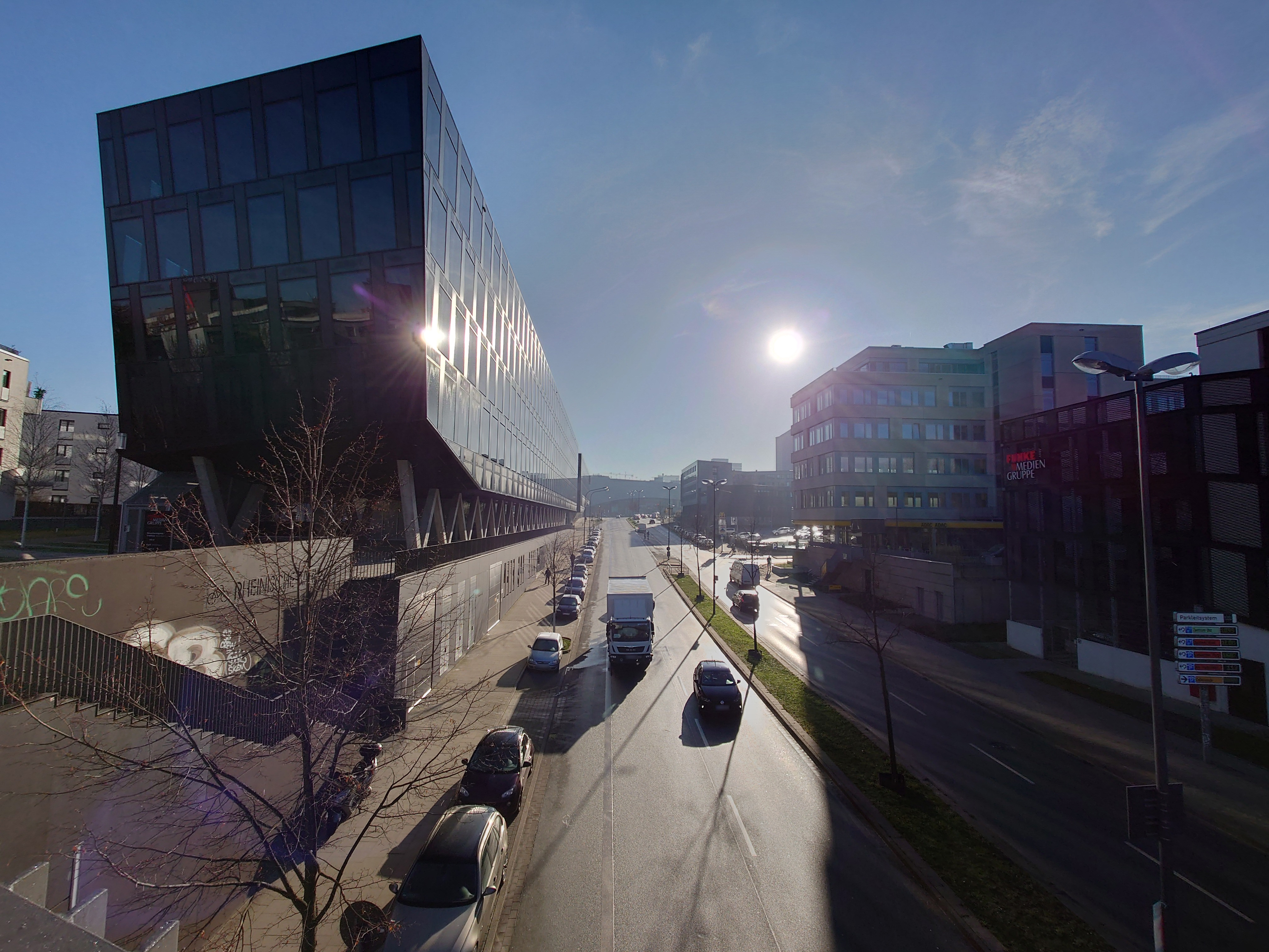 Die Hauptkamera auf der Rückseite besitzt zwar weniger Auflösung, kann jedoch auf einen Autofokus sowie eine optischen Bildstabilisierung (OIS) zurückgreifen. Die Bildkomposition des Samsung-Smartphones weiß zu gefallen und übertreibt es nur gelegentlich mit dem Nachschärfen. Bei Panaroma-Motiven macht sich zudem die etwas geringe Auflösung bemerkbar und Details wirken ein wenig matschig. Der Ultraweitwinkel liefert ebenfalls gute Ergebnisse und zeigt allenfalls Schwächen im Bereich der Tiefenschärfe.