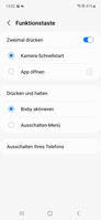 Wie bei anderen Galaxy-Smartphones dient die Powertaste als sogenannte Funktionstaste und kann direkt den Sprachassistenten Bixby, die Kamera oder eine andere App öffnen. Ein Einhand-Modus steht ebenfalls zur Verfügung und das Displays lässt sich durch doppeltes Tippen aus dem Standby aufwecken.