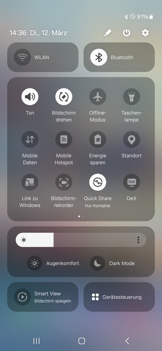 Die Displayhelligkeit wurde erwartungsgemäß im Vergleich zum Vorgänger verbessert, bleibt jedoch deutlich hinter denen des Galaxy S23 oder eines S24 zurück. Bei einer reinweißen Darstellung mit aktiviertem Umgebungslichtsensor messen wir im Schnitt 908 cd/m². Bei einer gleichmäßigen Verteilung von hellen und dunklen Flächen (APL18) klettern die Werte auf bis zu 1.367 cd/m², bei der HDR-Wiedergabe ermitteln wir einen Spitzenwert von 1.410 cd/m². Wer die Helligkeit manuell regelt, dem stehen maximal 414 cd/m² zur Verfügung.