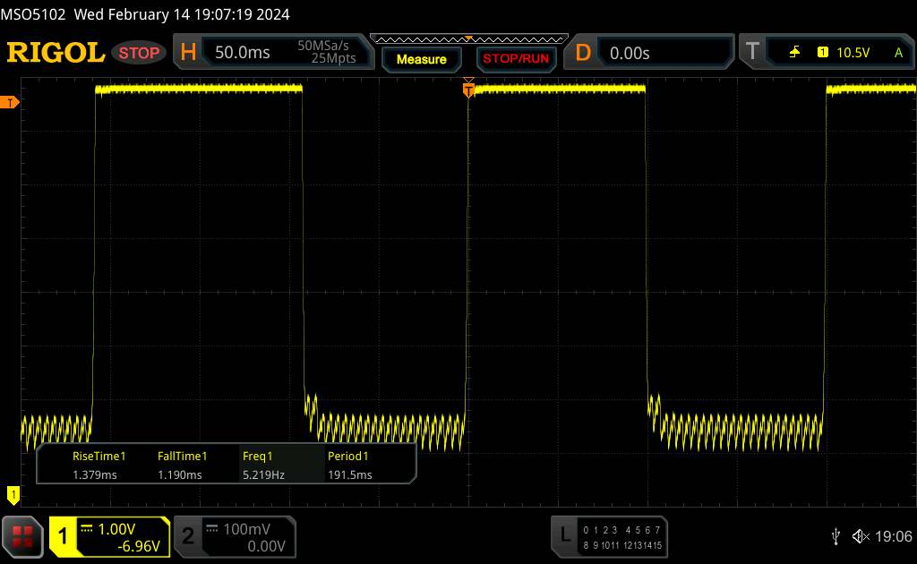 Bedingt durch die verbaute OLED-Technologie nutzt Samsung zur Steuerung der Bildschirmhelligkeit die Modulationsart PWM samt Bildschirmflackern. Der Amplitudenverlauf ist bei unserer Messung mit dem Oszilloskop über das gesamte Helligkeitsspektrum sehr gleichmäßig und schwankt zwischen 240 Hz und 480 Hz konstant. Mit einem Flickermeter, welches visuell wahrnehmbare Schwankungen in der Leuchtdichte erkennt, kommen wir auf kein anderes Ergebnis.