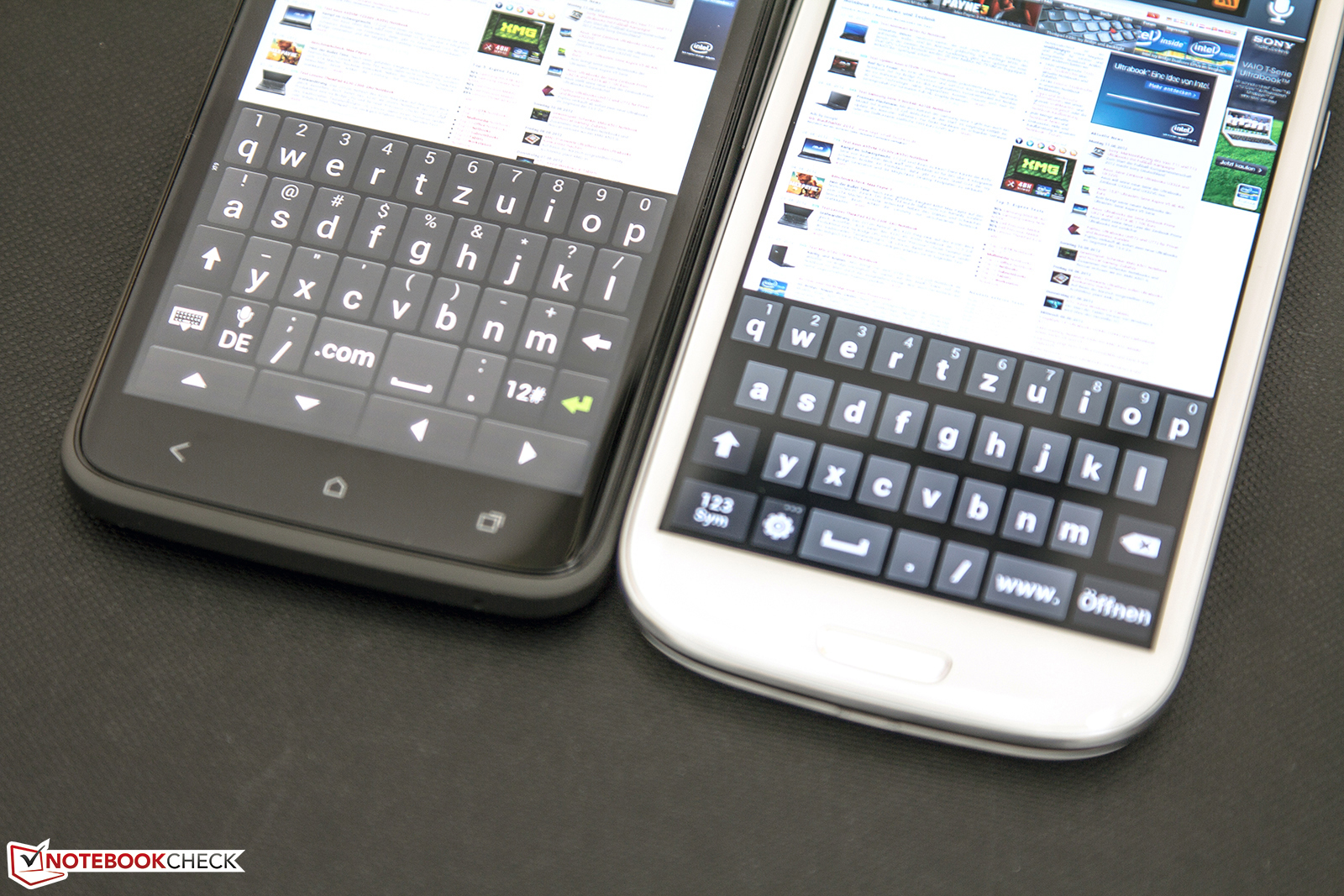 Der kapazitive Touchscreen des Samsung Galaxy S3 reagiert punktgenau auf die Berührungen der Finger und erkennt auch diverse Multi-Touch-Gesten. Pinch-to-Zoom (Zwei-Finger-Zoom) oder Tap-to-Zoom (Doppelklick-Zoom) sind nur zwei der möglichen Gesten, die vor allem beim Surfen im Internet genutzt werden. Für das Schreiben von E-Mails oder Kurznachrichten wird automatisch eine virtuelle QWERTZ-Tastatur eingeblendet. Im Vergleich zum HTC One X verzichtet Samsung auf eine zusätzliche Zeile mit Navigationspfeilen, wodurch das Layout insgesamt lockerer gestaltet ist. Insgesamt besteht die Tastatur aus vier Zeilen mit einer großen Leertaste am unteren Ende. Über der Tastatur befindet sich eine zusätzliche Zeile. In dieser werden Wortvorschläge und nützliche Zeichen eingeblendet. Mit ein wenig Übung geht das Tippen sehr schnell von der Hand. Eine weitere Eingabemöglichkeit nennt sich T9 Trace und ist die Weiterentwicklung der Samsung-Funktion Swipe. Durch das Wischen über die Tasten wird das passende Wort eingefügt. Der Redakteur konnte sich mit dieser Funktion im Alltag allerdings nicht auf die Schnelle anfreunden.