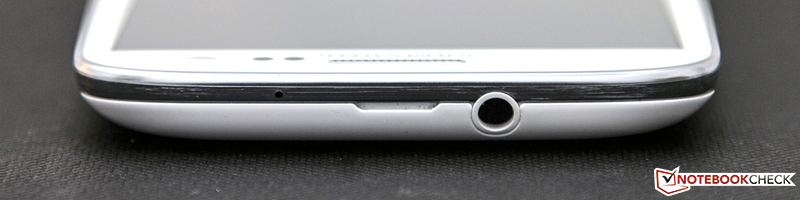 Zurück zu den Schnittstellen: Die Unterseite beherbergt einen Micro-USB-2.0-Anschluss über den sowohl Daten als auch Audio- und Videomaterial via MHL-HDMI (Mobile High-Definition Link) übertragen werden können. Über diesen Port wird das Smartphone auch geladen. Für die Videoübertragung wird allerdings ein spezieller Adapter benötigt, der nicht im Lieferumfang enthalten ist. An der Kopfseite hat Samsung den 3,5mm-Stereo-Klinkeanschluss angebracht. Bei der Nutzung eines Headsets mit Bedienelementen für die mobilen Geräte von Apple ließen sich bis auf die Steuerung der Lautstärke alle Funktionen nutzen. Des Weiteren befinden sich an der Ober- und Unterseite jeweils ein integriertes Mikrofon.