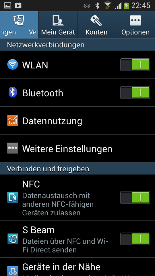 Der Testproband lässt in diesem Segment kaum Wünsche offen. Das WLAN-Modul funkt nach dem Standard 802.11 a/b/g/n; sogar im Dualband-Modus. Für den Datenaustausch unterwegs steht ein LTE-Modul bereit, welches eine Downloadgeschwindigkeit von bis zu 100 Mbit/s erreichen kann. Für Uploads steht immerhin noch die Hälfte der Geschwindigkeit zur Verfügung. Bluetooth ist in Version 4.0 an Bord und auch an einem NFC-Sensor (Near-Field-Communication) wurde nicht gespart. Empfangsprobleme oder unerwartete Verbindungsabbrüche können wir innerhalb der Testszenarien nicht verzeichnen.