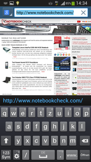 Die virtuelle QWERTZ-Tastatur bietet im Hochkant- sowie im Landscape-Modus einen ausreichenden Tastenabstand um treffsicher zu schreiben. Leider belegt die virtuelle Tastatur im Querformat über 50 % des Displays. Wer es noch komfortabler haben möchte, sollte zu einem Gerät mit größerem Display greifen. Hierbei kann man sich beispielsweise an der Galaxy-Note-Reihe orientieren.