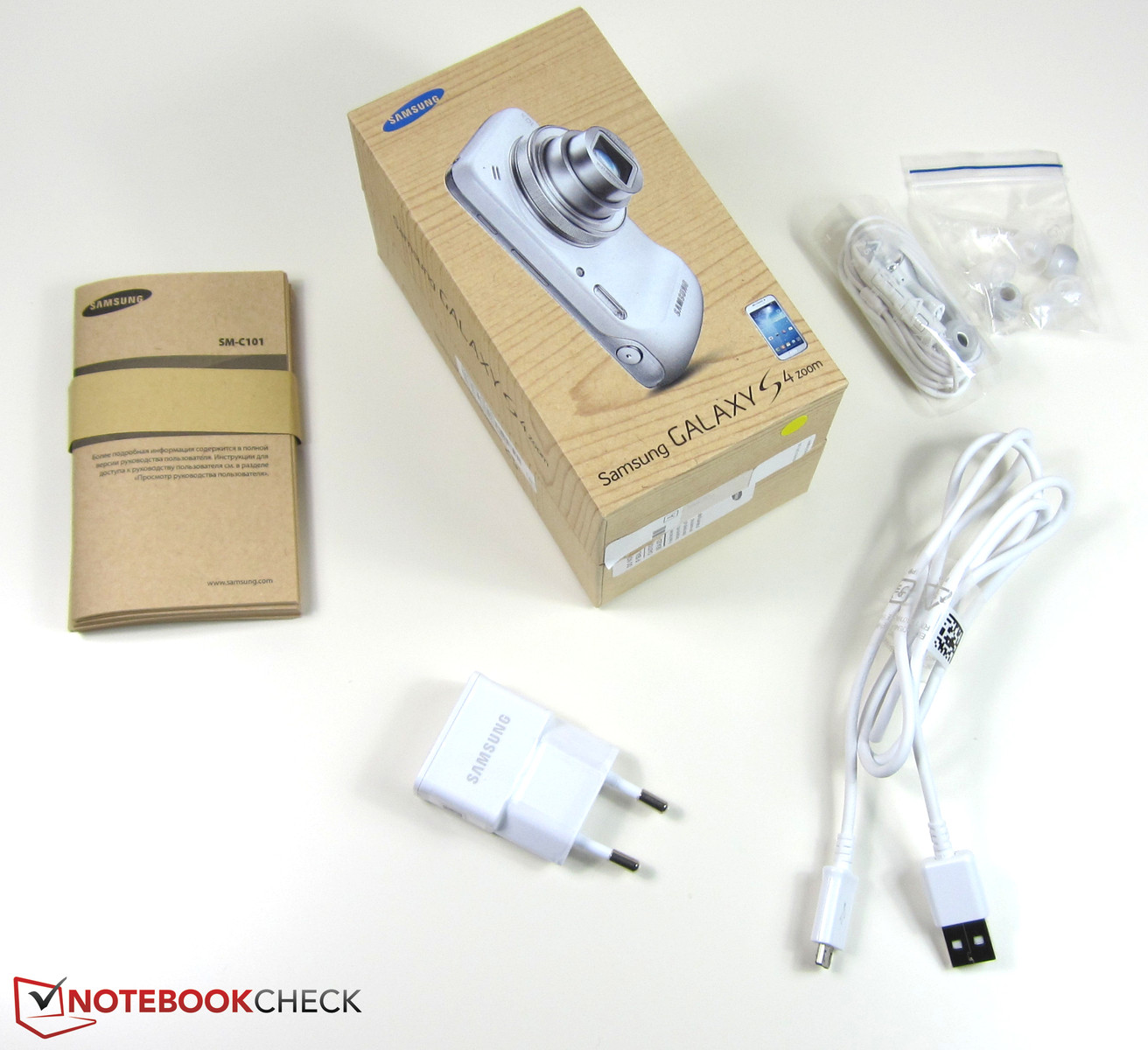 Samsung liefert das Galaxy S4 Zoom zusammen mit einem Micro-USB-Kabel, einem modularen Netzteil, In-Ear-Kopfhörern sowie einer gedruckten Schnellstartanleitung aus. In seinem Online-Shop bietet der Hersteller zwar zahlreich vorhandenes Zubehör an, zum Testzeitpunkt waren jedoch keine entsprechenden Produkte für die Smartphone-Kamera vorhanden. Samsung gibt 24 Monate Garantie auf das Galaxy S4 Zoom.
