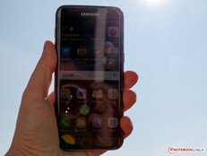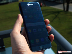 Im Freien profitiert das Samsung Galaxy S7 Edge von seiner enormen Leuchtkraft und dem bärenstarken Kontrast der Super-AMOLED-Technik, sodass es im Alltag zu keinerlei Schwierigkeiten kommen sollte. Lediglich bei direkter Sonneneinstrahlung wird es mühsam, den Inhalt auf dem Panel zu erkennen. Die Reflexionen der spiegelnden Oberfläche stören nur bei flachen Betrachungswinkeln.