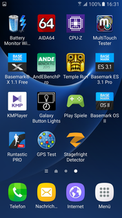 Bei den Systembenchmarks liefert das S7 Edge ebenfalls Bestwerte. Lediglich in dem als sehr konsistent geltenden PCMark for Android fällt das Testgerät ins untere Drittel ab und bleibt sogar leicht hinter dem Vorgänger zurück. Dies kann durchaus auf die Performance-Bremse TouchWiz UI zurückzuführen sein. Im Alltag läuft das System sehr flüssig und es gibt nur nach rechenintensiven Apps kleinere Ruckler.