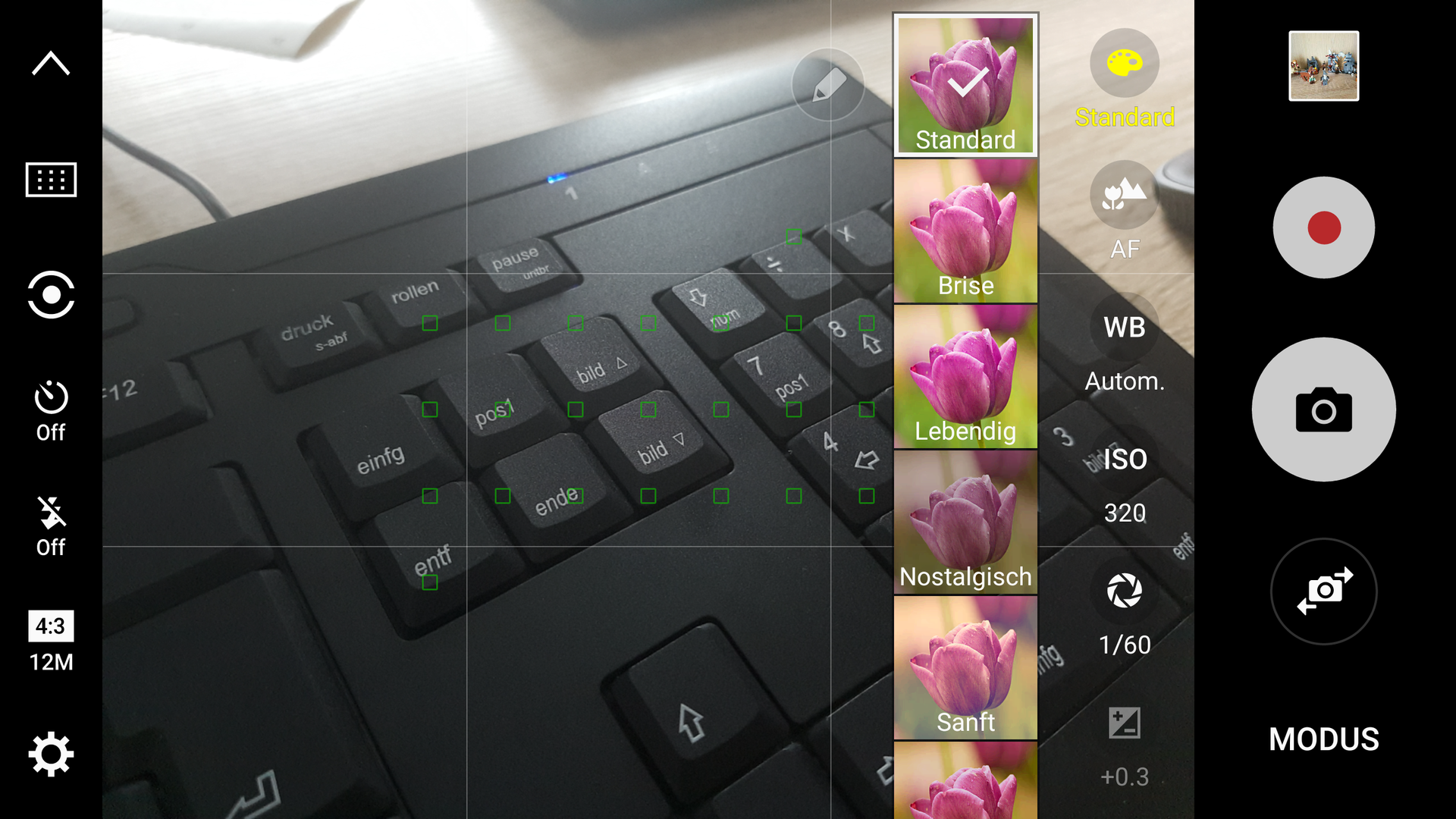 Die Frontkamera bietet nominell die gleiche Blendenzahl wie ihre große Schwester auf der Rückseite, jedoch nur mit 5-MP-Auflösung. Auch hier kommt ein automatischer HDR-Modus zum Einsatz. Außerdem stehen diverse Beauty-Modi zur Wahl. Die Aufnahmen gefallen uns richtig gut, die Optik gehört klar zu den besseren ihres Metiers.