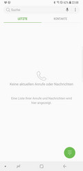 Die Telefonie-App des Samsung Galaxy S9 Plus hat sich im Vergleich zum Vorgänger leicht verändert und ist nun schlanker geworden. Der Reiter „Orte“ wurde ersatzlos gestrichen und es kann nur noch zwischen der Anrufliste, den eigenen Kontakten und dem Ziffernfeld gewechselt werden.